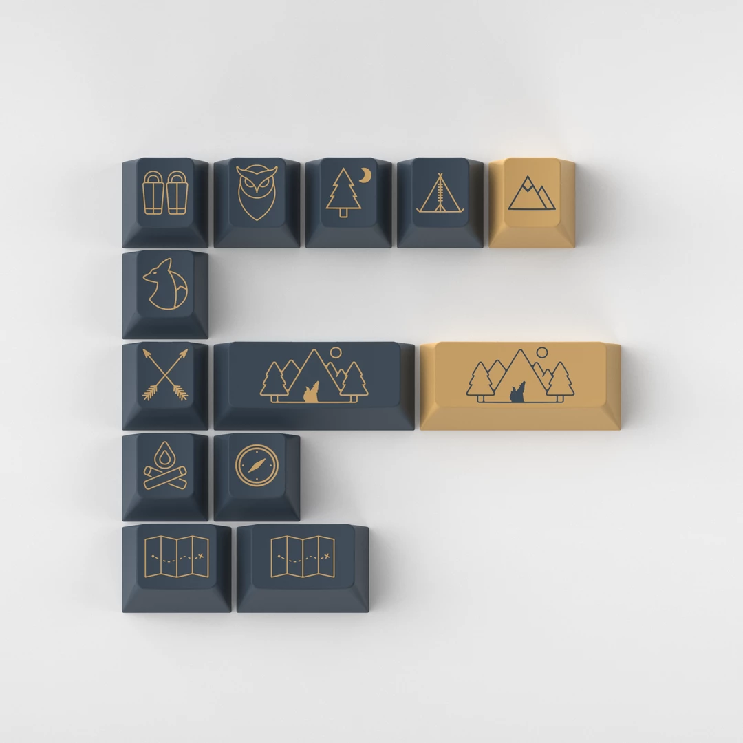 The inspiration for this set came from my love for the great outdoors, specifically the ambiance of the moon. This set uses a dark blue-grey to represent the cool color of the night, and a beige-gold to signify the yellow hue the moon gives off on a night in the wilderness.
