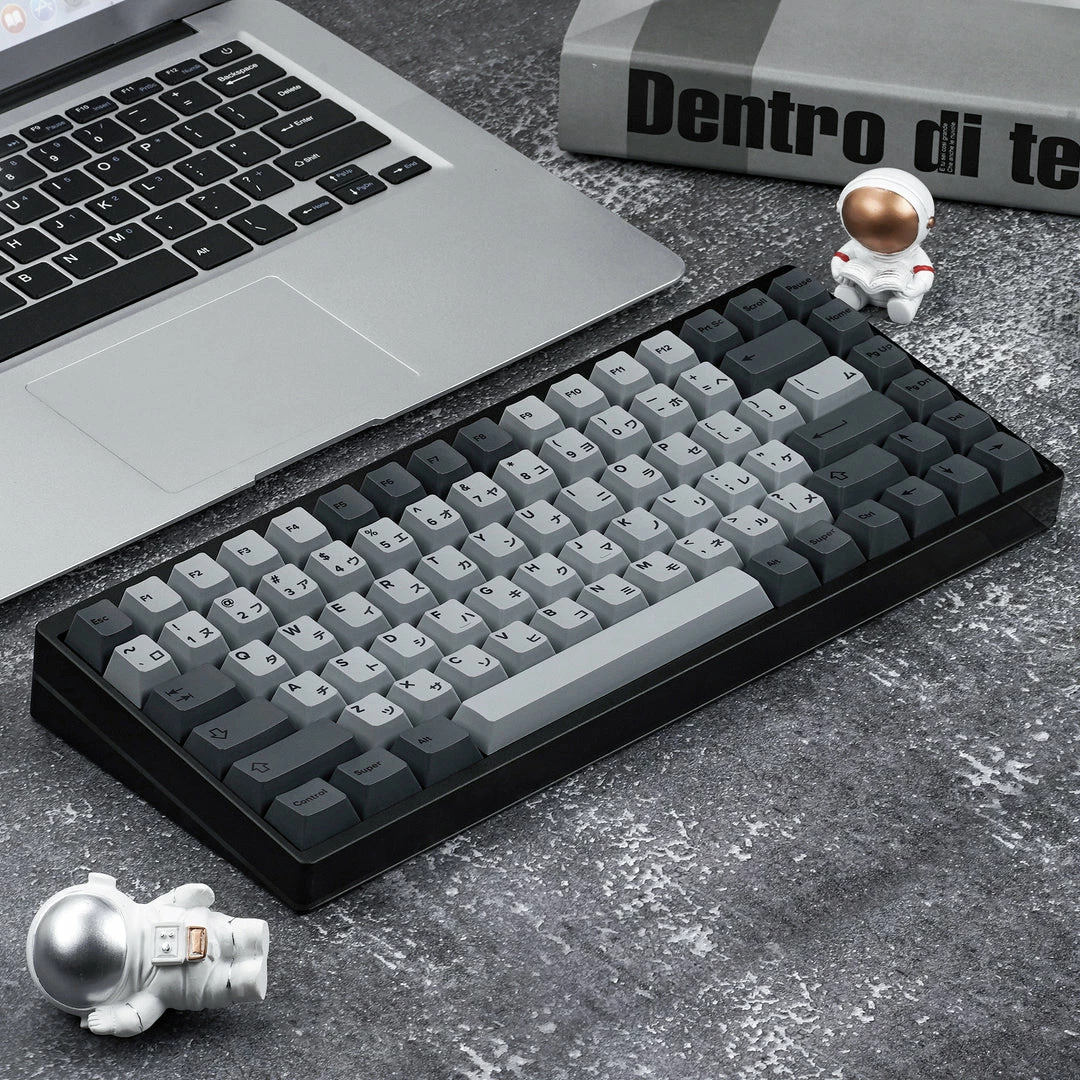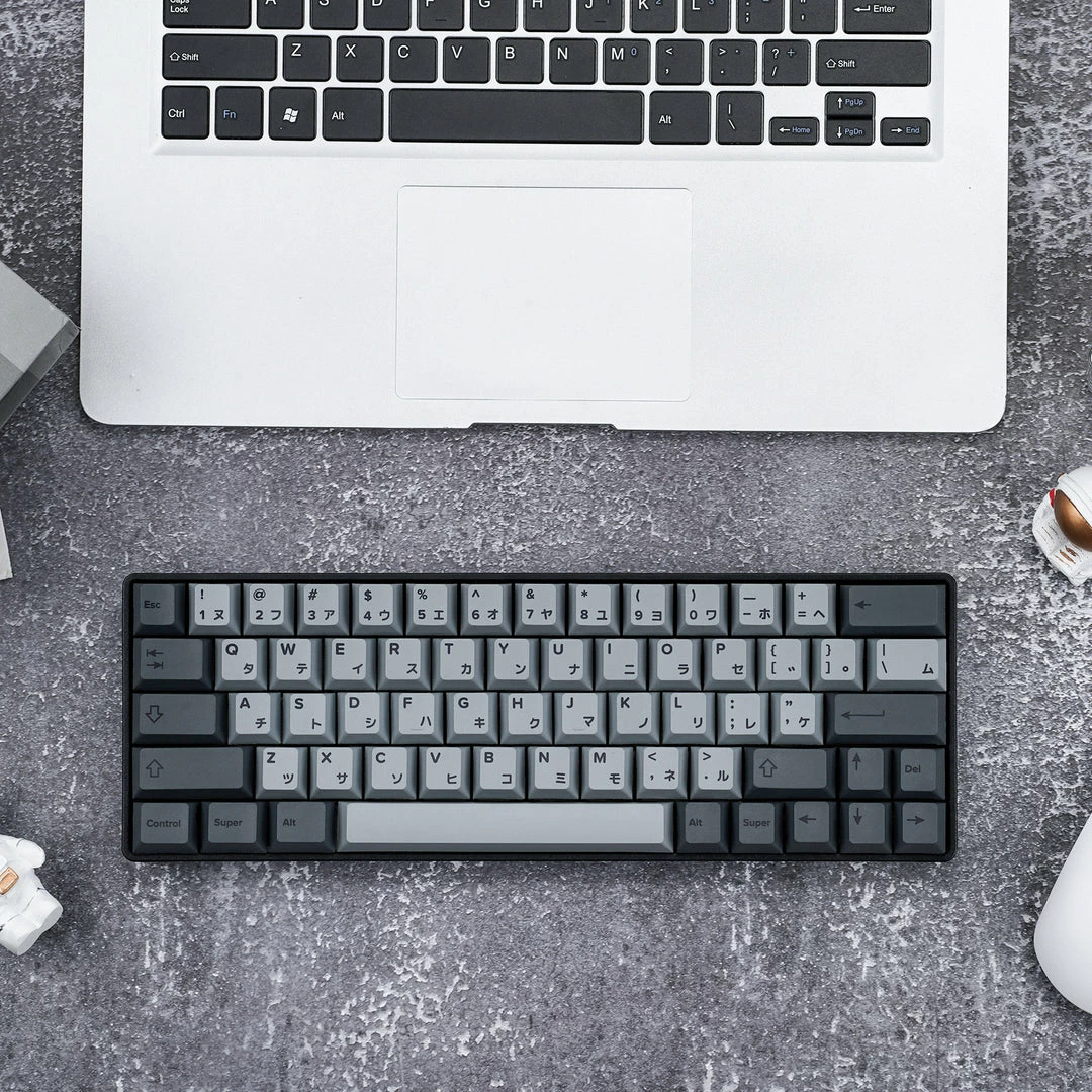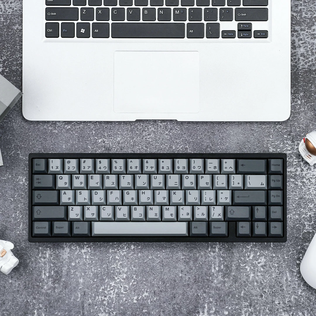 Fully Assembled keyboard with Cement Grey Japanese PBT Keycaps Collection